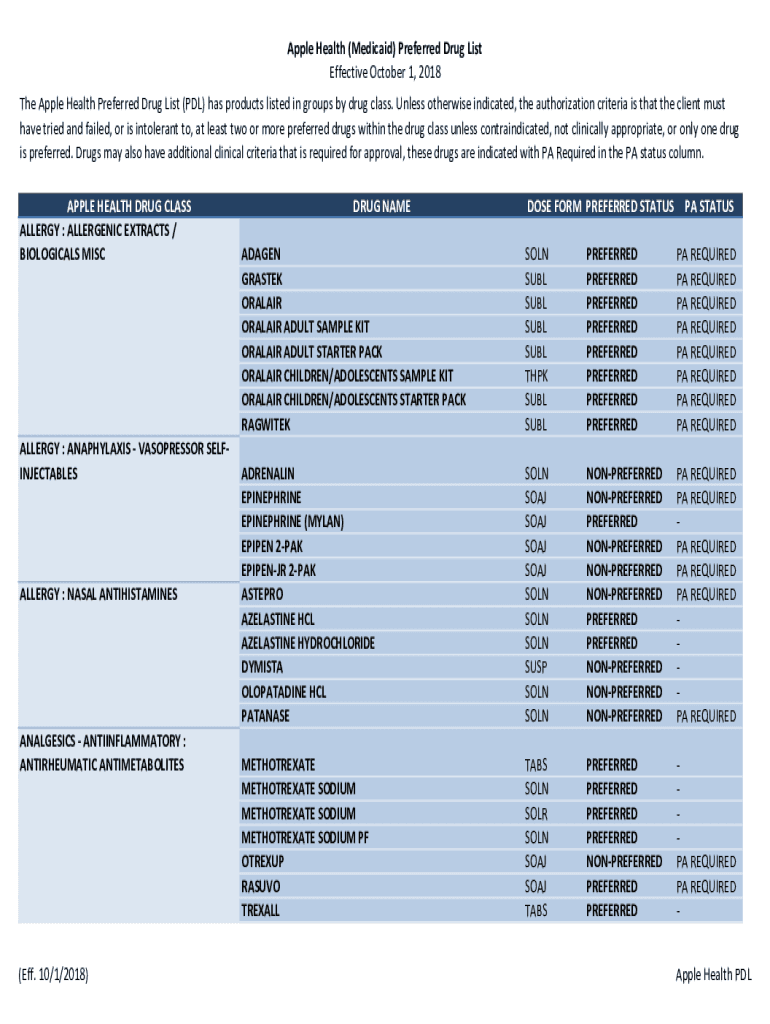 Get the free APPLE HEALTH DRUG CLASS DRUG NAME DOSE FORM PREFERRED ...