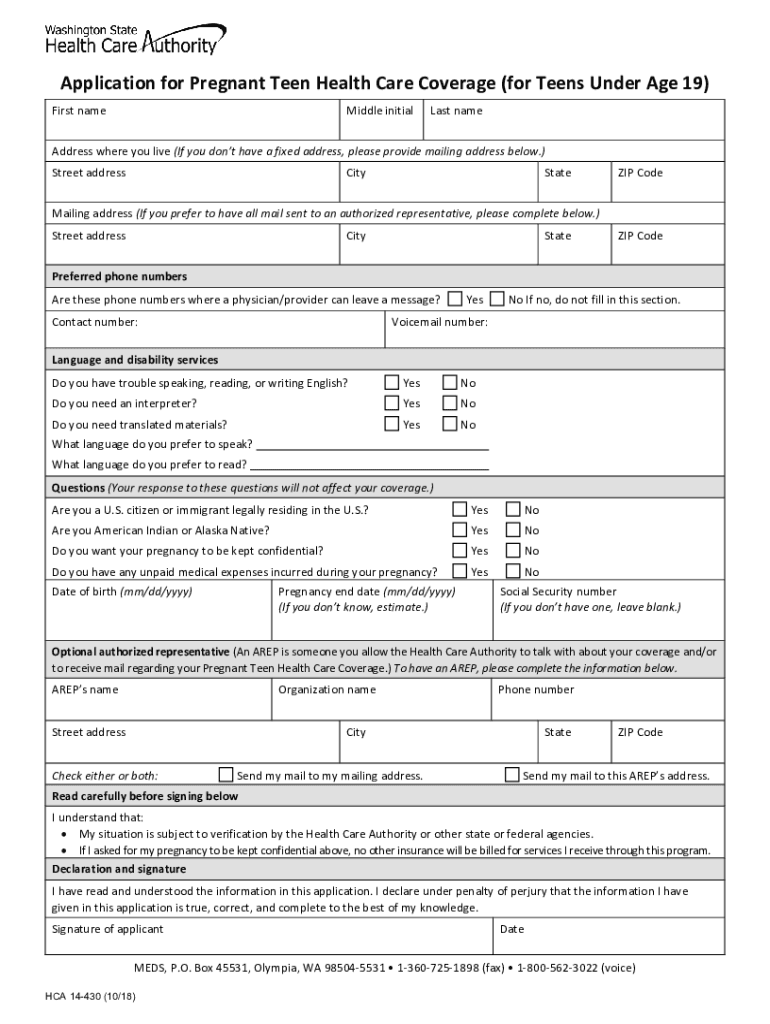 Get the free Application for pregnant teen health care coverage (for ...