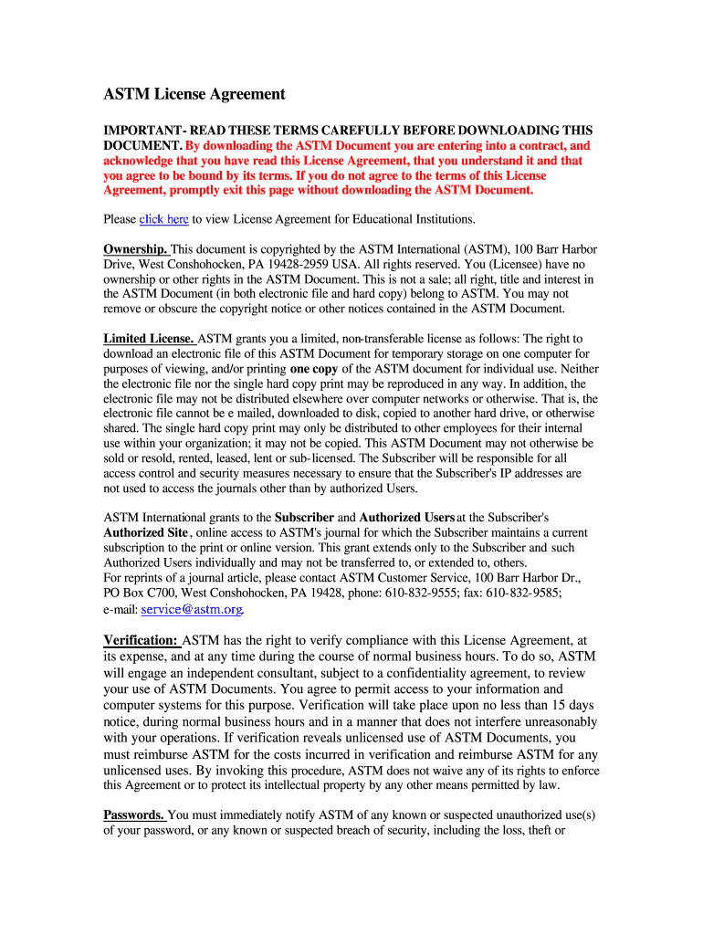Get the free ASTM License Agreement