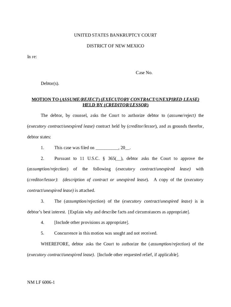 Instructions for the United States: Delaware Bankruptcy Court Rejects "Implied ... - nmb uscourts form