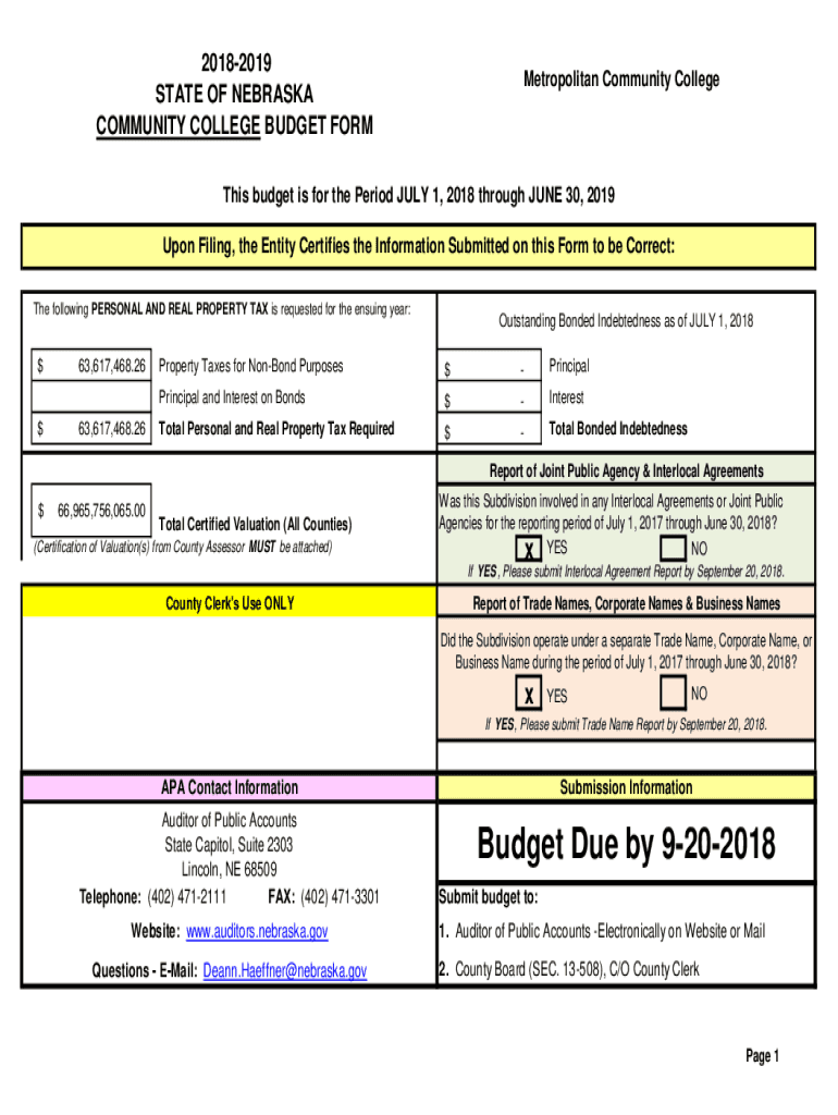 Get the free Budget Due by 9-20-2018 - Metropolitan Community College