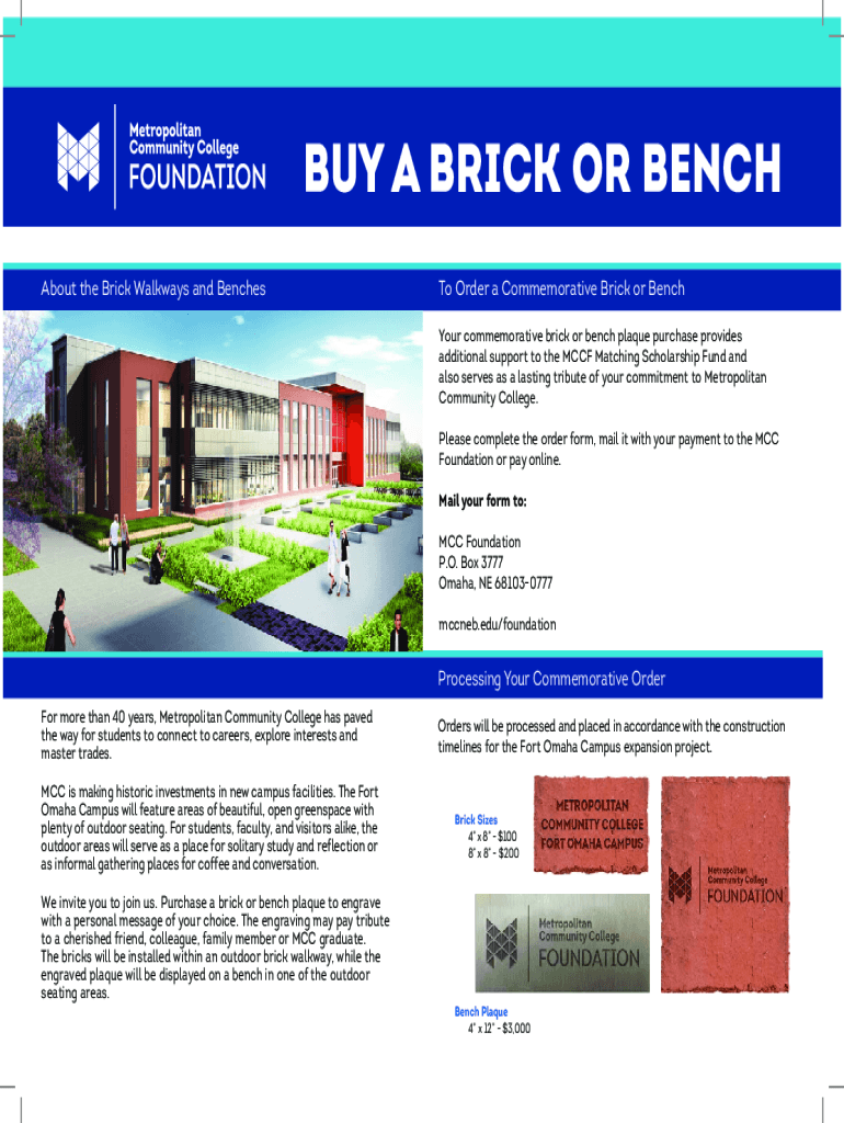 To fill out buy a brick or, individuals can visit the organization's website, select the desired brick, and provide the necessary personalization information and payment details.