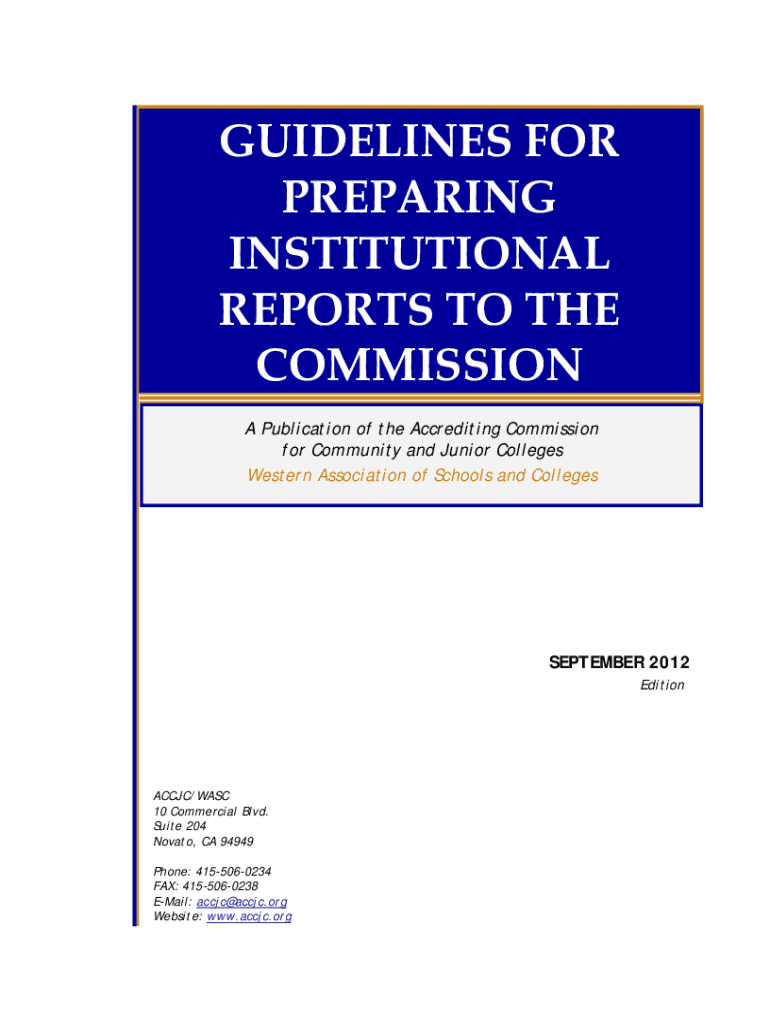 GUIDELINES FOR PREPARING INSTITUTIONAL REPORTS TO THE COMMISSION A Publication of the Accrediting Commission for Community and Junior Colleges Western Association of Schools and CollegesSEPTEMBER