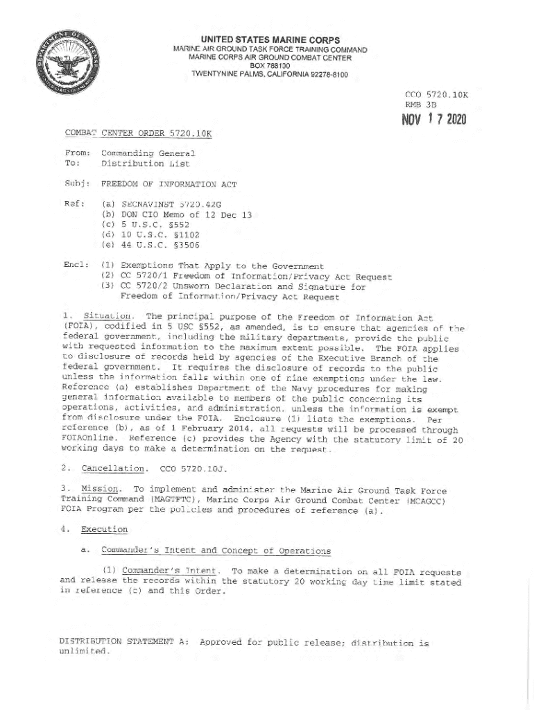 MARINE CORPS AIR GROUND COMBAT CENTER