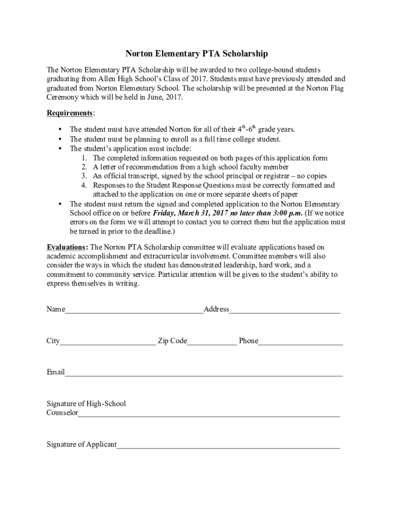 How to fill out norton elementary pta scholarship