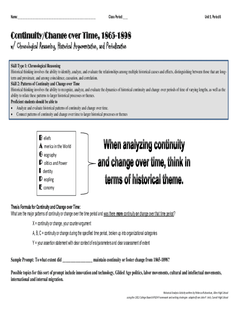 Get the free Continuity/Change over Time, 1865-1898 w/ Chronological ...