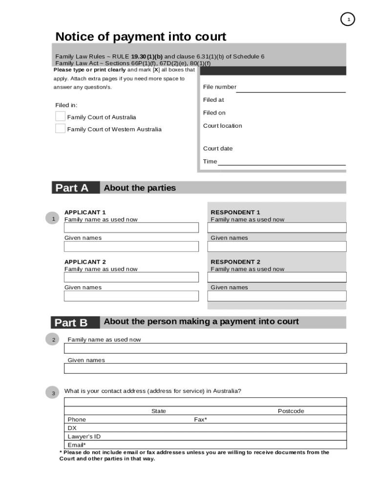 Frequently asked questions about the form Notice of payment into court - Family Court of Australia