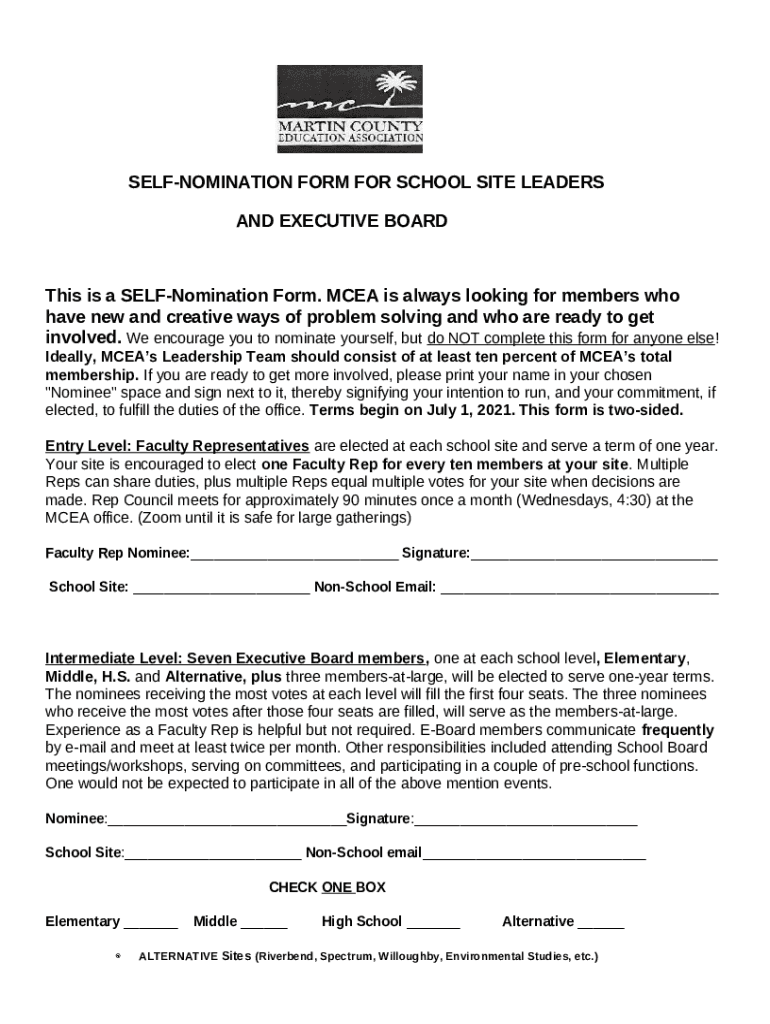 The The Martin County Education Association - Home is a writable document that should be submitted to the specific address in order to provide specific info. It has to be filled-out and signed, which can be done manually, or by using a particular solution such as PDFfiller. It helps to complete any PDF or Word document right in the web, customize it according to your requirements and put a legally-binding electronic signature. Right after completion, the user can easily send the The Martin County Education Association - Home to the relevant receiver, or multiple individuals via email or fax. The blank is printable too from PDFfiller feature and options proposed for printing out adjustment. Both in electronic and physical appearance, your form will have got clean and professional outlook. Also you can save it as the template to use it later, there's no need to create a new blank form from the beginning. You need just to edit the ready sample.