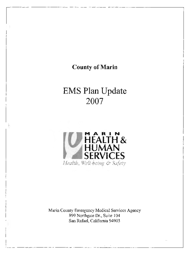 )County of Marines Plan Update2007) MARINHEAlTH& HUMANSERVICES11ealth, Wellbeing & Safety)Marin County Emergency Medical Services Agency 899 North gate Dr., Suite 104 San Rafael, California 94903MARIN