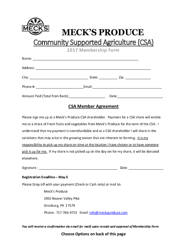 Fill out your 2017 farm sharecsa form online with pdfFiller!
