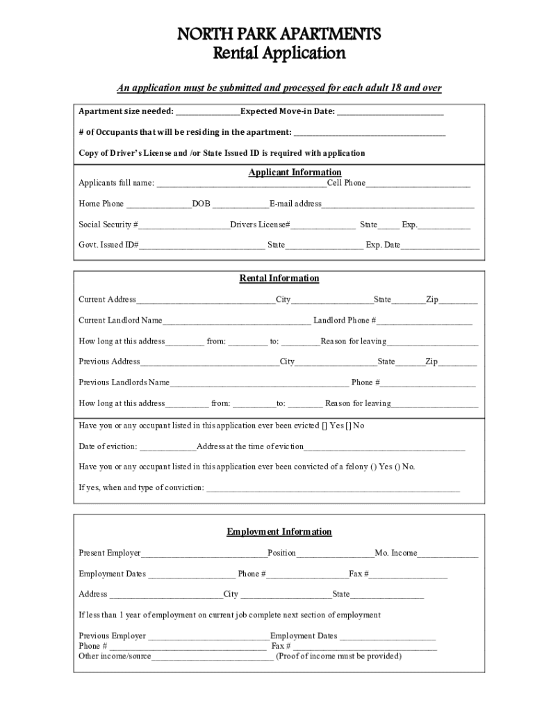 Get the free North Park Properties - Apartment Rental Application