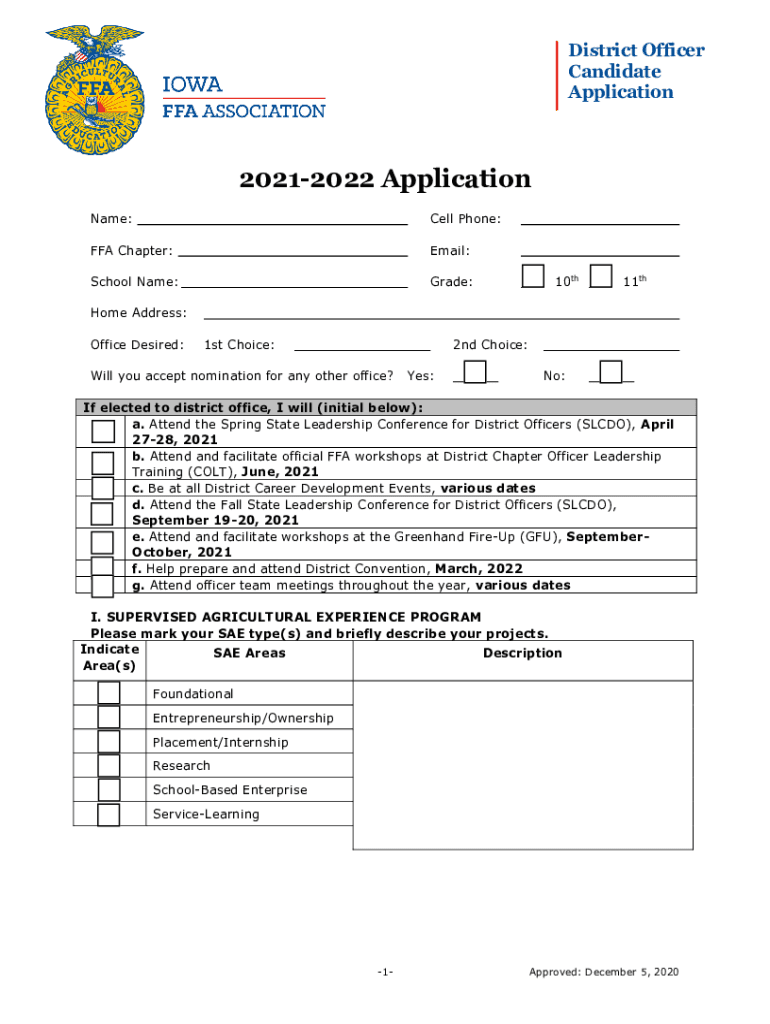 Congratulations on taking the initiative to apply for a district office in the Iowa FFA