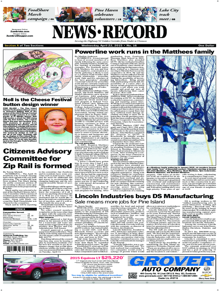 Food Share March campaign / 4APine Haven celebrates volunteers / 1BLake City track meet / 6BNewspaper Online:Zumbrota.com Shopper Online:ZumbroShopper.com Serving the Highway 52 Golden Corridor from