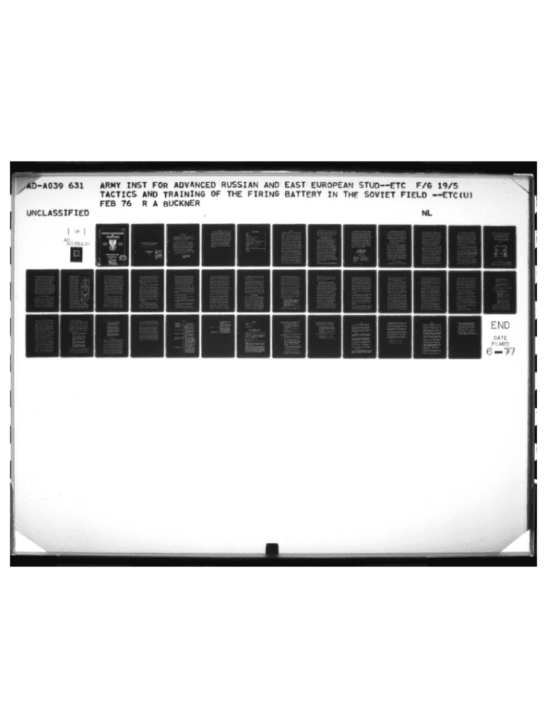 *039 631UNCLASSIFIEDARMY INST FOR ADVANCED RUSSIAN AND EAST EUROPEAN STUDETCFIG 19/5TACTICS AND TRAINING 0 THE FIRING BATTERY IN THE SOVIET FIELD ETC(U) FEB 76 R A BRUCKNER NFL t III 2.8J2.2 IF? DIU4