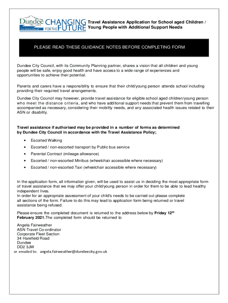 Young People with Additional Support NeedsPLEASE READ THESE GUIDANCE NOTES BEFORE COMPLETING FORM Dundee City Council, with its Community Planning