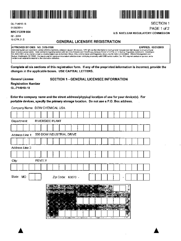1111111 11IIII 11111 11111 11111 11111 11111IIIII ITII IIIIIIIIIII ITII IIIII1111111 I AQIII 1111111 III II SECTION 1 PAGE 1 of 2GL71491018 01/06/2014 NRC FORM 664U. S. NUCLEAR REGULATORY COMMISSION02