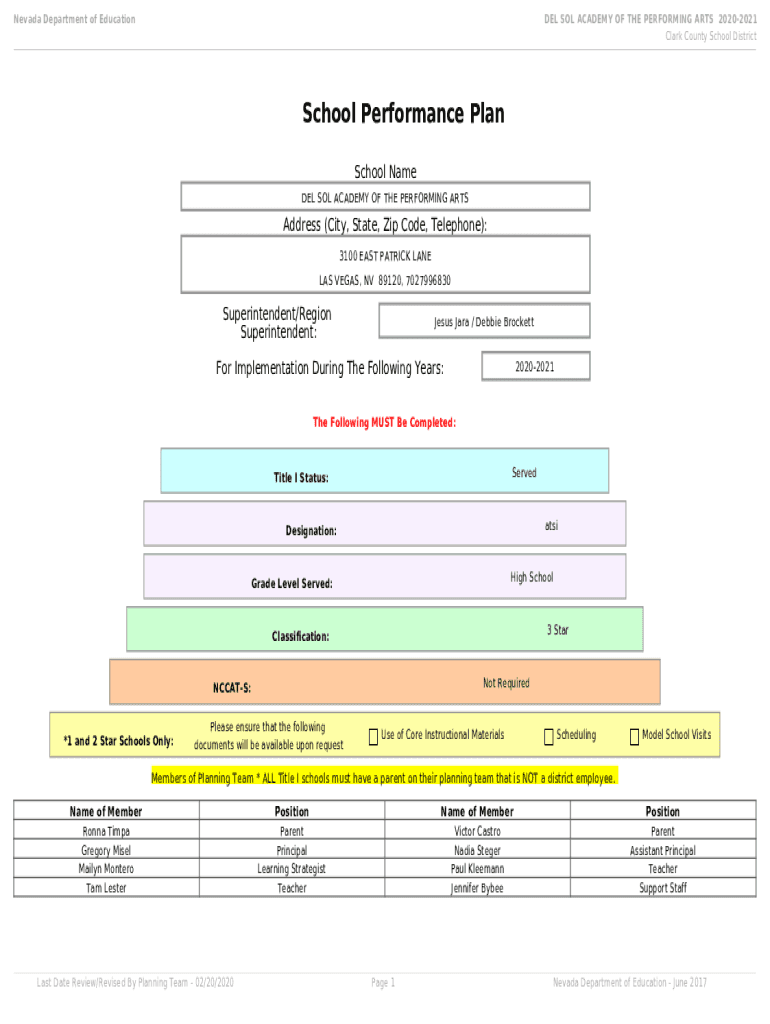 Nevada Department of Education DEL SOL ACADEMY OF THE PERFORMING ARTS 20202021