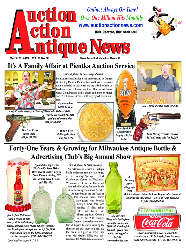 Online! Always On Time! Over One Million Hits Monthly www.auctionactionnews.com Help Recycle, Buy Antiques! March 20, 2013Vol. 18 No. 33News Periodical Mailed on March 14Its A Family Affair at Painted