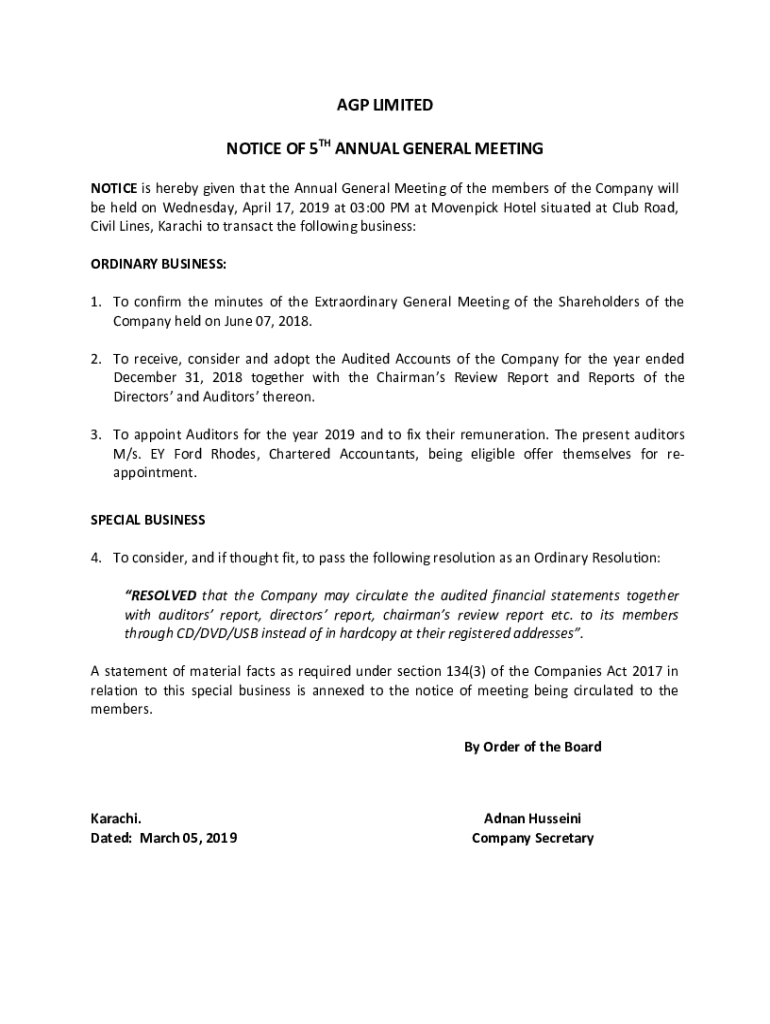 NOTICE OF 5TH ANNUAL GENERAL MEETING