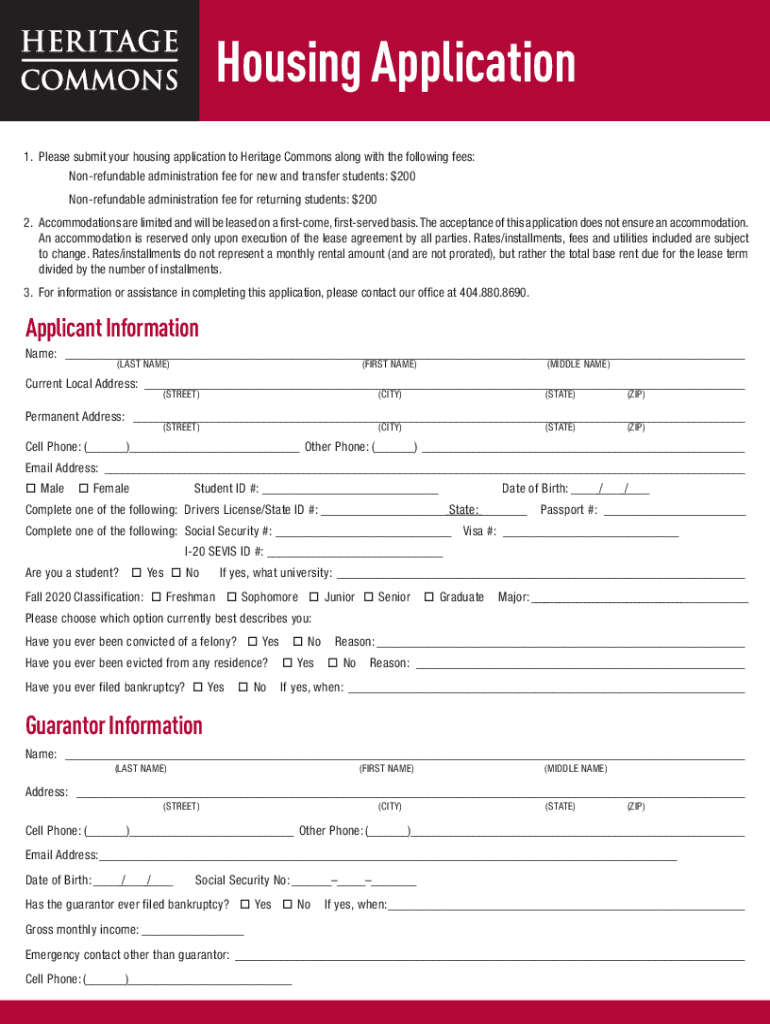 1. Please submit your housing application to Heritage Commons along with the following fees: