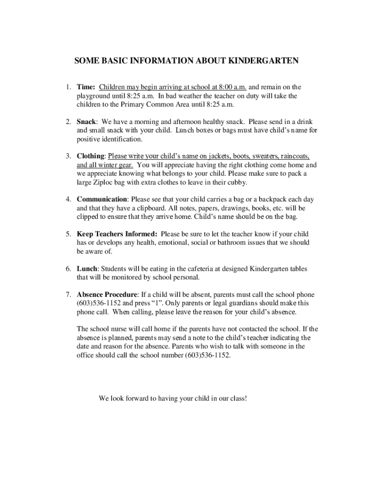 SOME BASIC INFORMATION ABOUT KINDERGARTEN