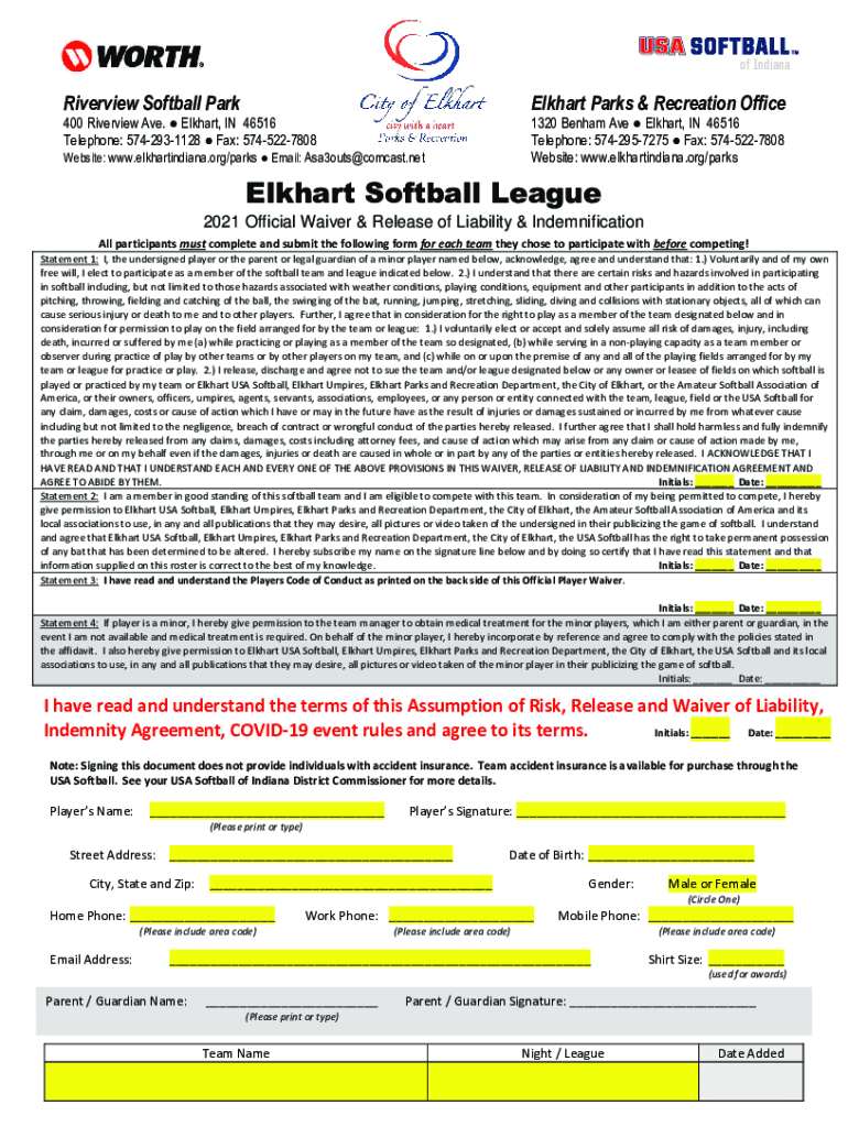 Of IndianaRiverview Softball Park Elkhart Parks & Recreation Office400 Riverview Ave. Elkhart, IN 46516 Telephone: 5742931128 Fax: 57452278081320 Bentham Ave Elkhart, IN 46516 Telephone: 5742957275