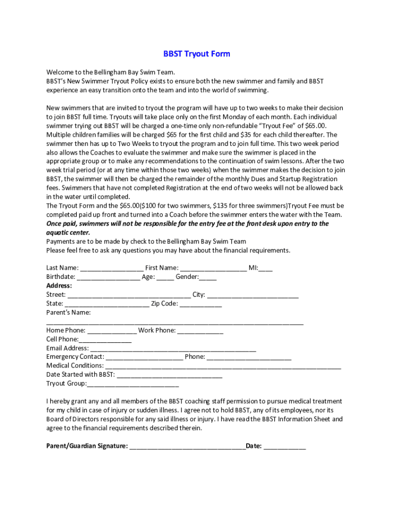 Get the free Online bellinghambayswimteam BBST Tryout Form ...