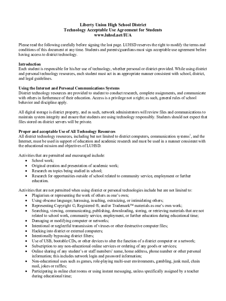 Please read the following carefully before signing the last page. LUIS reserves the right to modify