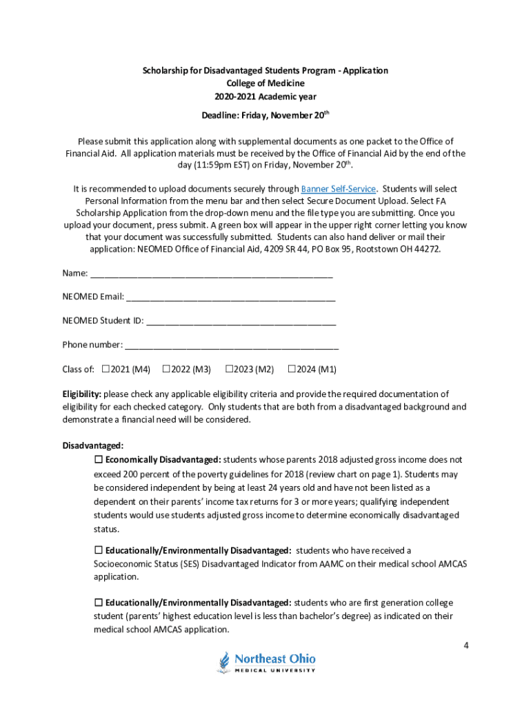 Get the free 2020-2021 SDS Program Application
