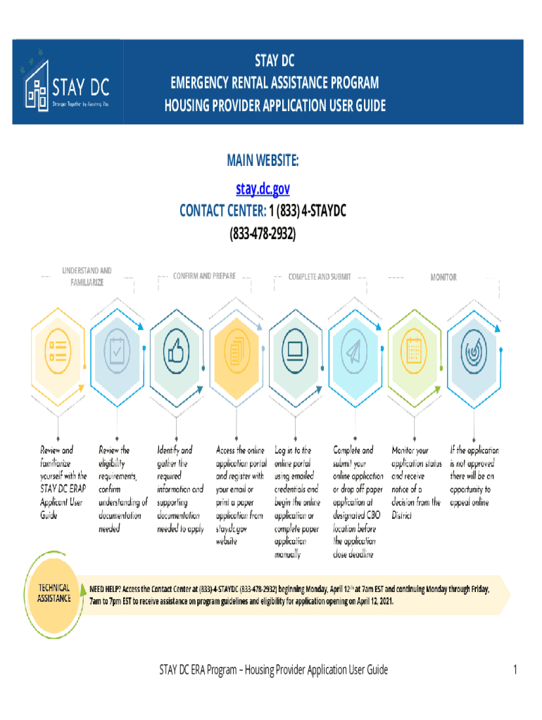 STAY DC EMERGENCY RENTAL ASSISTANCE PROGRAM HOUSING PROVIDER APPLICATION USER GUIDE MAIN WEBSITE: stay.DC.gov CONTACT CENTER: 1 (833) 4STAYDC (8334782932)STAY DC ERA Program Housing Provider Application