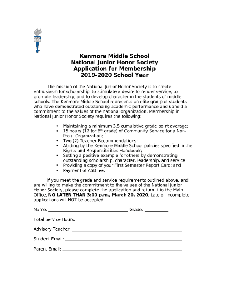 How to fill What Is the Junior National Honor Society?The ClassroomReferenceKenmore Middle School - Arlington Public SchoolsWhat Is the Junior National Honor Society?The Classroom word template