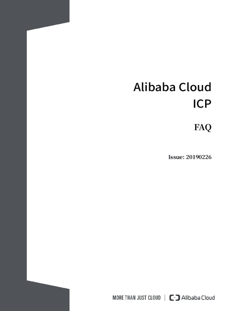 Issue: 20190226ICPLegal disclaimer FAQ / Legal disclaimerAlibaba Cloud reminds you to carefully read and fully understand the terms and conditions of this legal disclaimer before