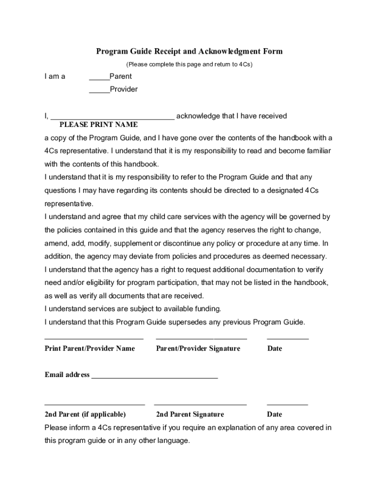 Get the free Program Guide Receipt and Acknowledgment Form (4Cs)