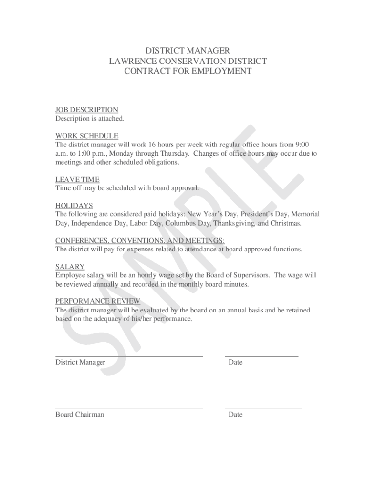 The district manager will work 16 hours per week with regular office hours from 9:00