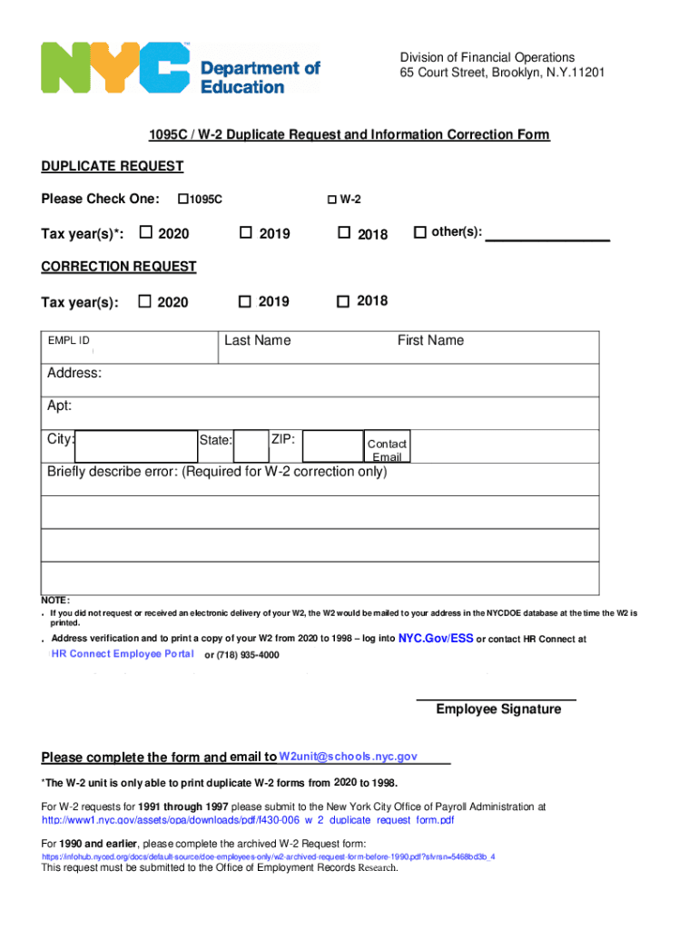 Division of Financial Operations 65 Court Street, Brooklyn, N.Y.11201 Division of Financial Operations 65 Court Street, Brooklyn, N.Y. 112011095C / W2 Duplicate Request and Information Correction