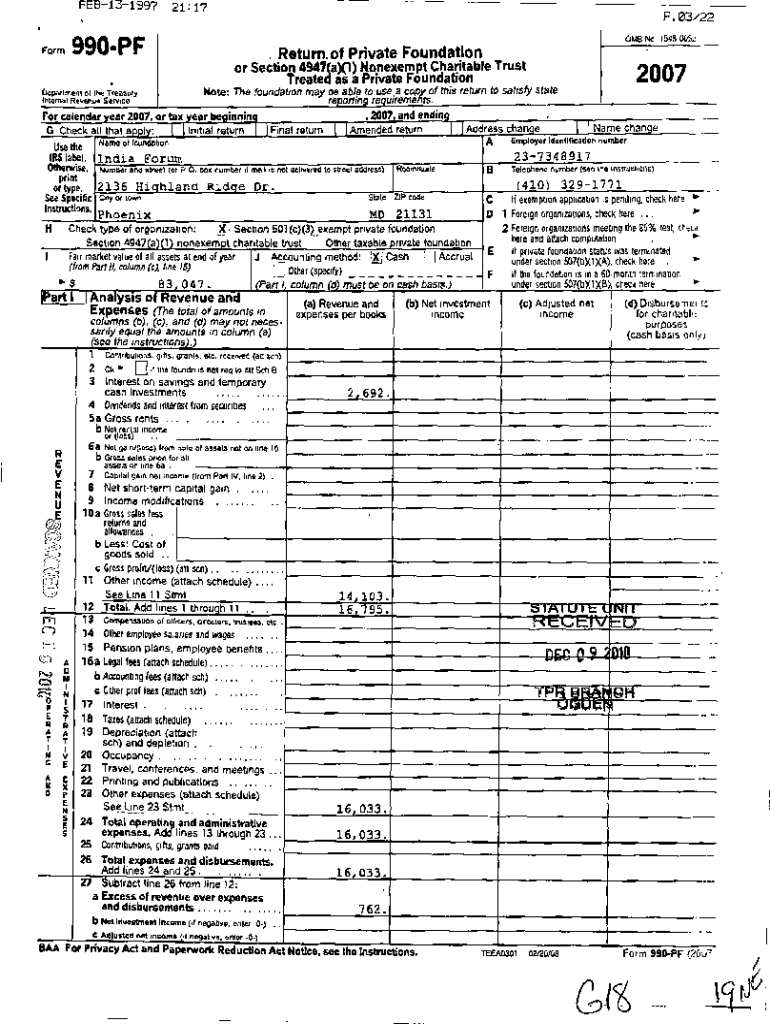 FEB13199721:17P. 03/22 OMB No 1545 LOS 'Form 990P, Return. Of Private Foundation or Section 4947(a)1) Nonexempt Charitable Trust Create as a Private Foundation Devi recent of the Treasury Informal