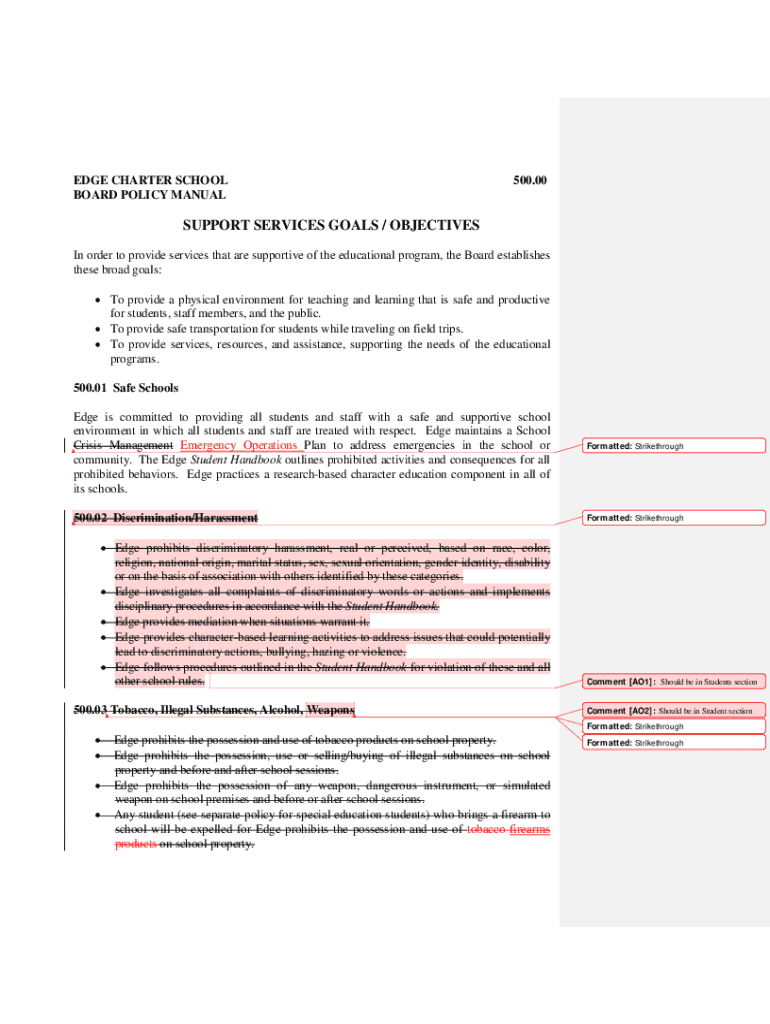 EDGE CHARTER SCHOOL BOARD POLICY MANUAL500.00SUPPORT SERVICES GOALS / OBJECTIVES In order to provide services that are supportive of the educational program, the Board establishes these broad goals: