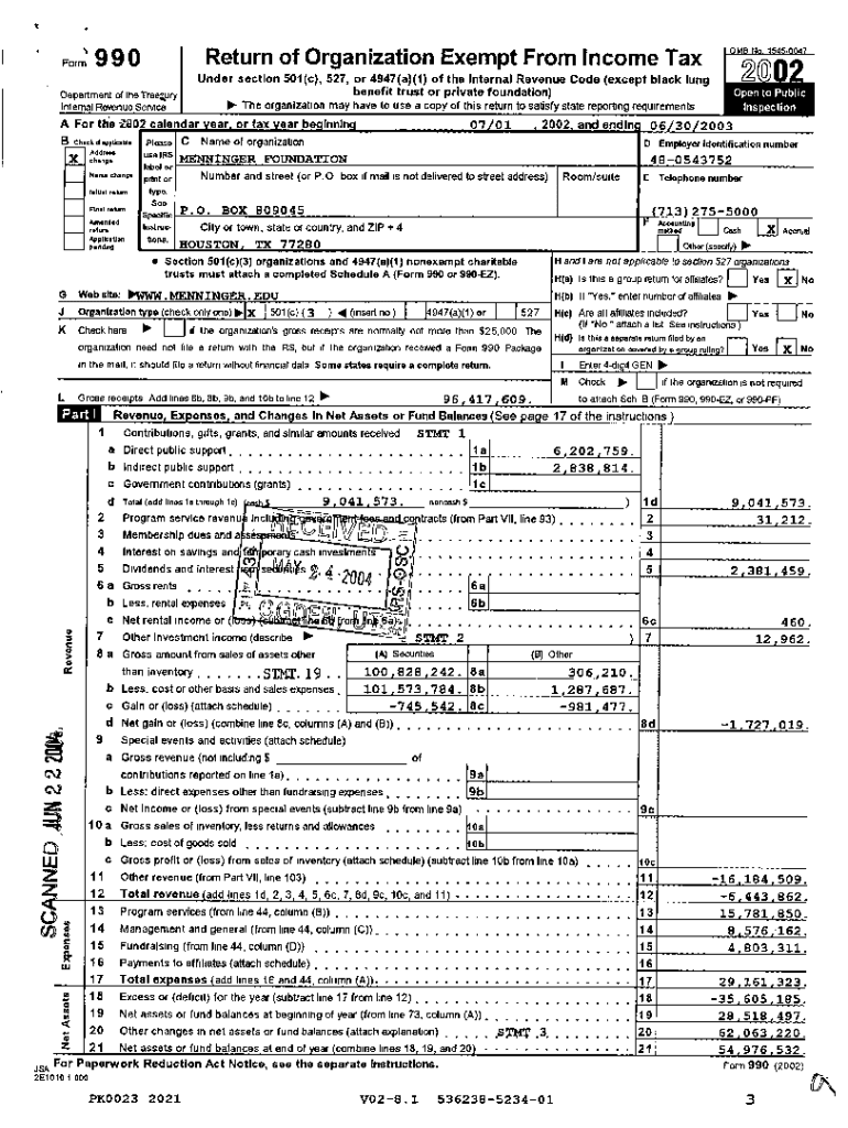 Return of Organization Exempt From Income Taxon “9 9 0Department or the Treasury Internal Revenue Service A For the 20 02 calendar B Check if applicable Address change.m. Change initial r.t, Final