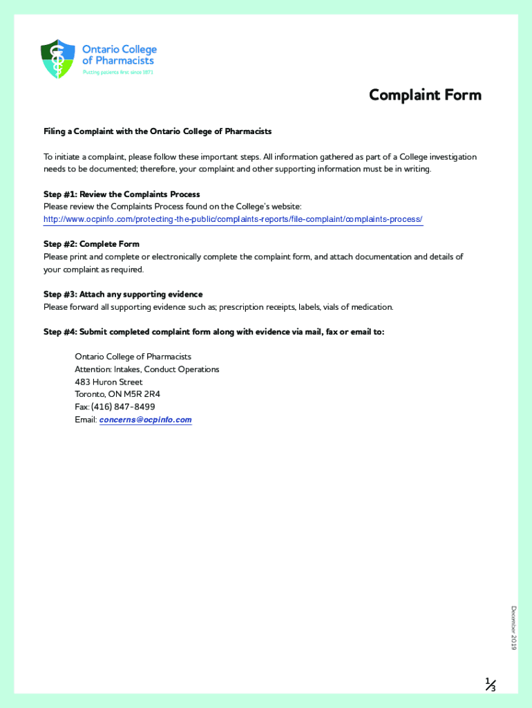 Ocp Complaint Form is not the form you're looking for?Search for another form here.