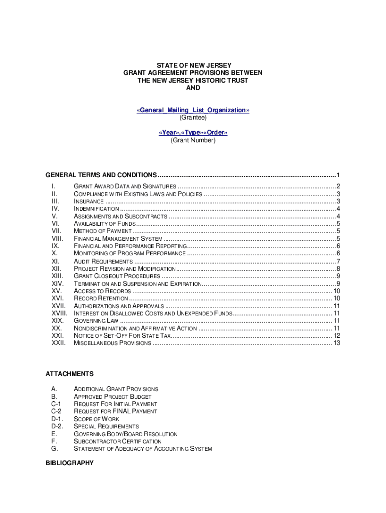 Get the free Sample Capital Grant Agreement - New Jersey Historic Trust