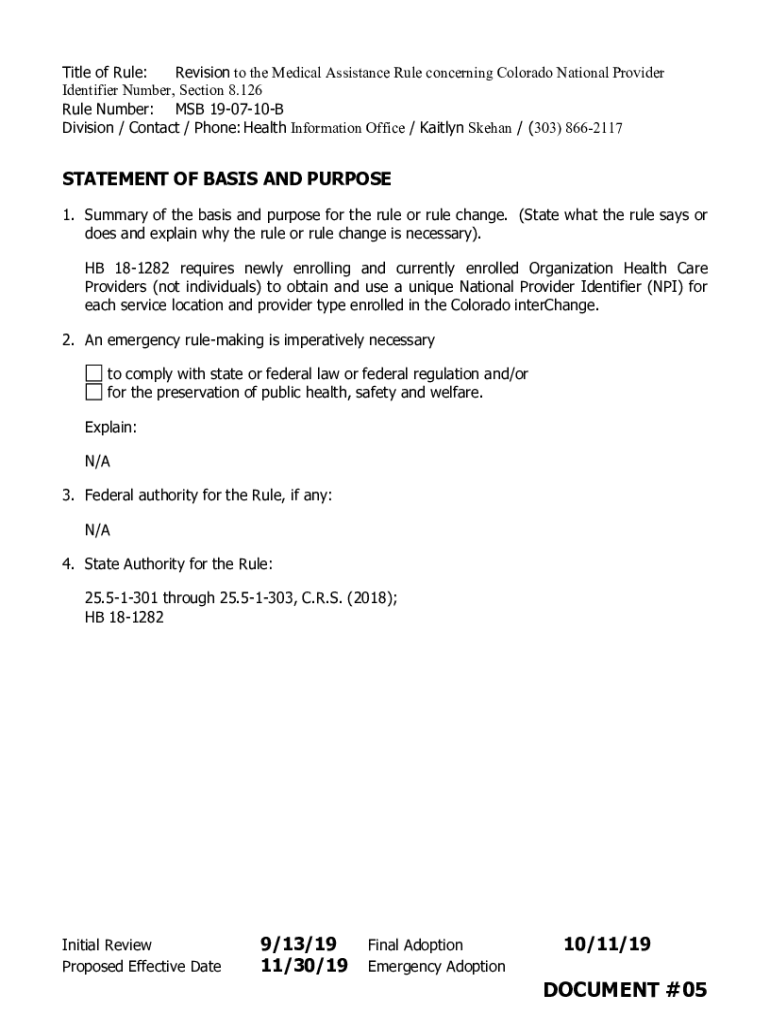 Revision to the Medical Assistance Rule concerning Colorado National Provider
