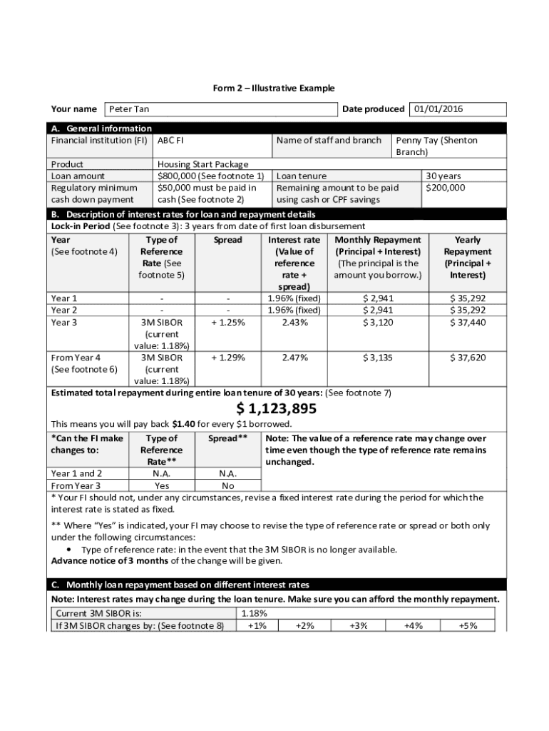 Form 2 Illustrative Example Your name Peter Mandate produced 01/01/2016A. General information Financial institution (FI) ABC Finale of staff and branchProduct Loan amount Regulatory minimum cash down