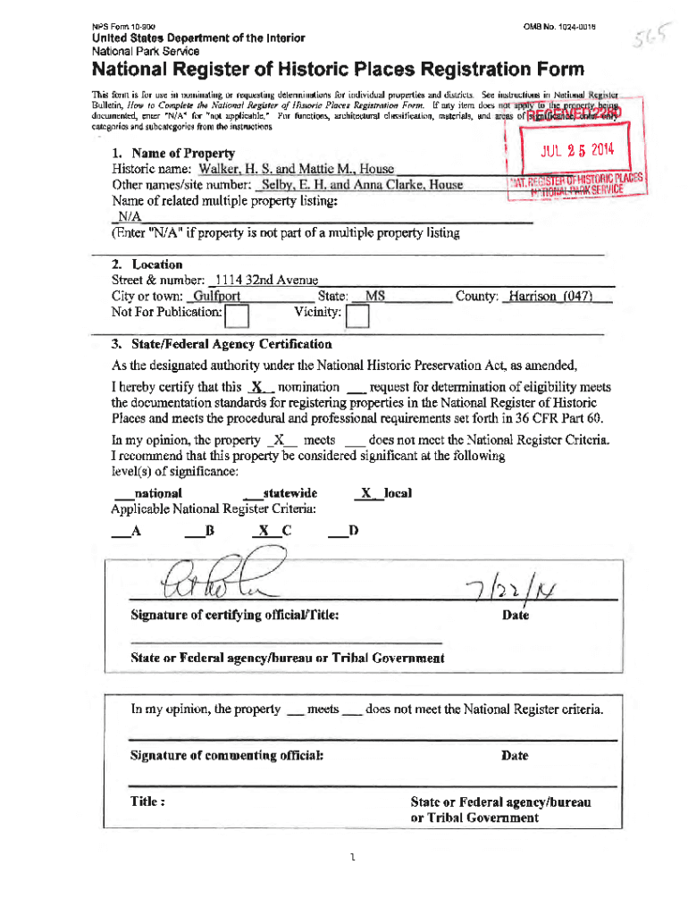 NPS Form 10900OMB No. 10240018United States Department of the Interior National Park ServiceNational Register of Historic Places Registration Form This form is for use in nominating or requesting