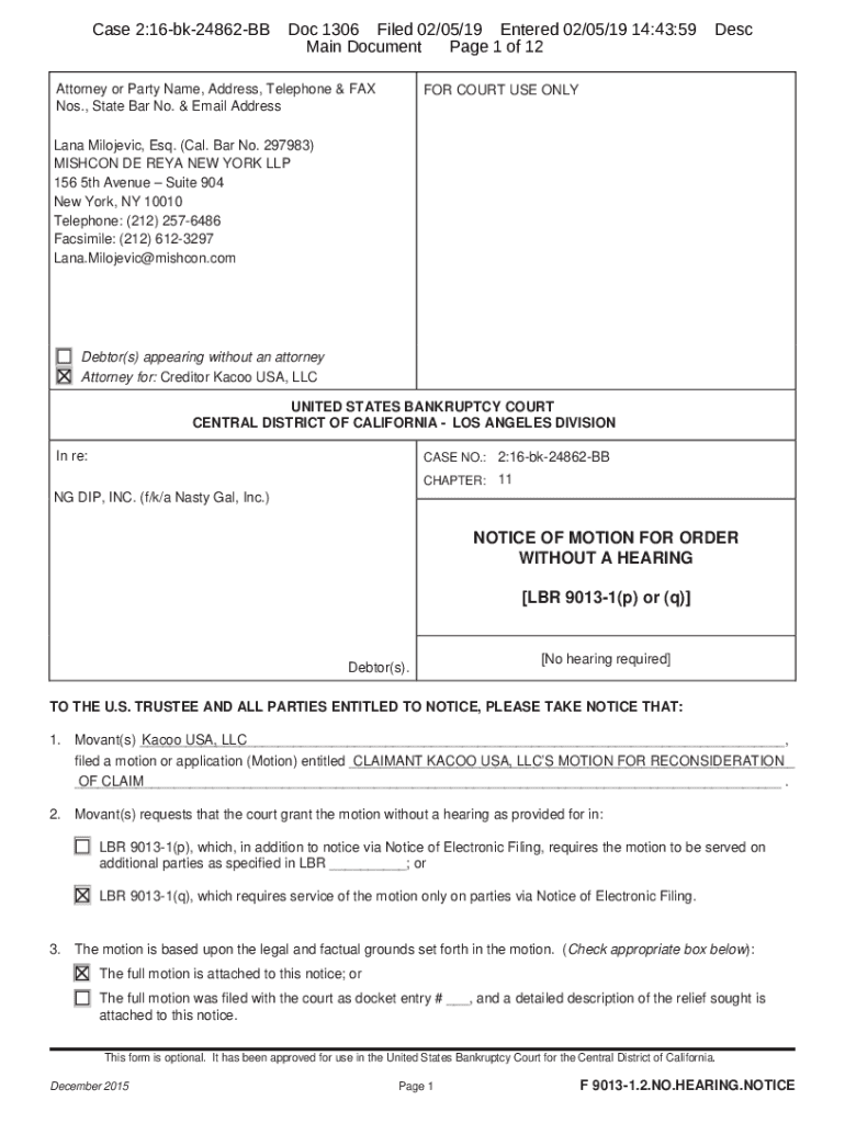 Case 2:16bk24862BBDoc 1306 Filed 02/05/19 Entered 02/05/19 14:43:59 Main Document Page 1 of 12Attorney or Party Name, Address, Telephone & FAX Nos., State Bar No. & Email AddressDescFOR COURT USE