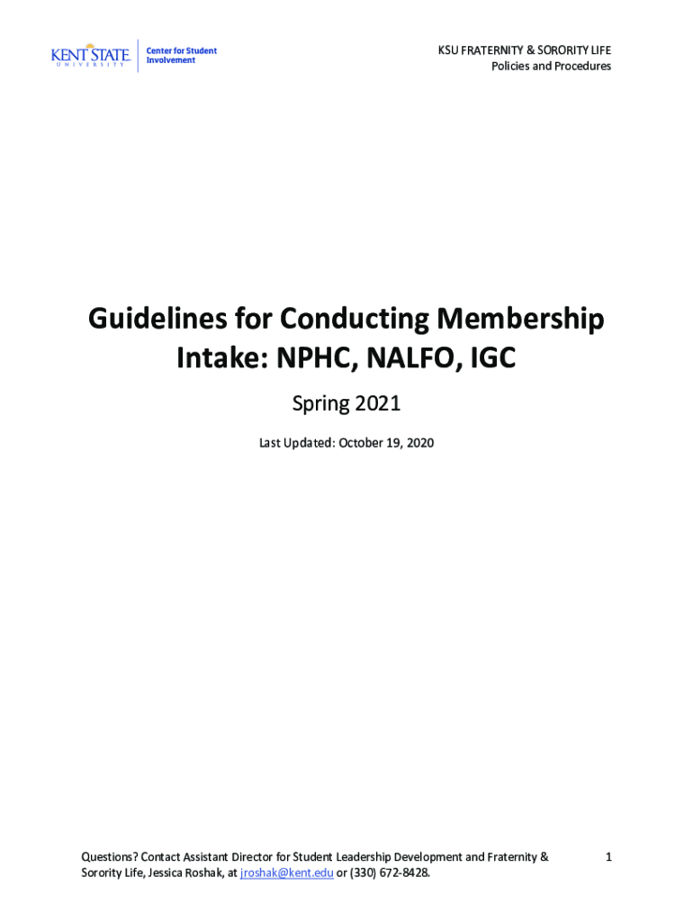 CSU FRATERNITY & SORORITY LIFE Policies and ProceduresGuidelines for Conducting Membership Intake: NPHC, NAL FO, IGC Spring 2021 Last Updated: October 19, 2020Questions? Contact Assistant Director