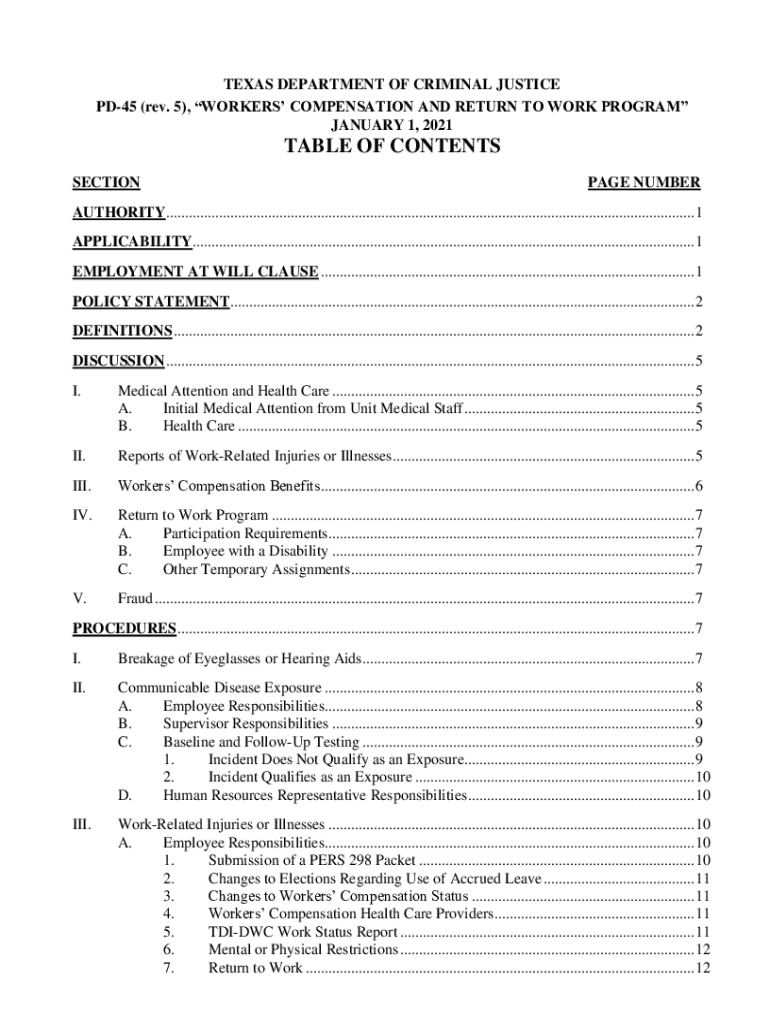 PD45 (rev. 5), WORKERS COMPENSATION AND RETURN TO WORK PROGRAM