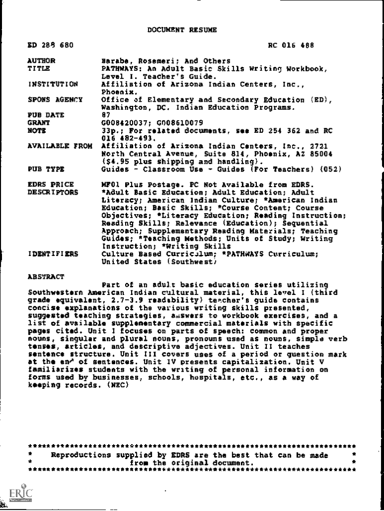 PATHWAYS: An Adult Basic skill Writing Workbook,