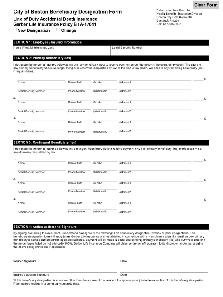 Clear Ferocity of Boston Beneficiary Designation Form