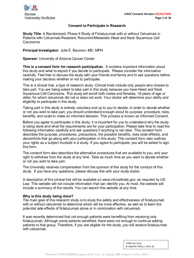 ACC Consent Version: 09/04/2020-Page 1 of 19Consent to Participate in Research Study Title: A Randomized, Phase II Study of Ficlatuzumab with or without in Patients with CetuximabResistant, Recurrent/Metastatic