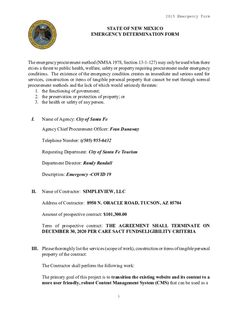2015 Emergency Formulate OF NEW MEXICO